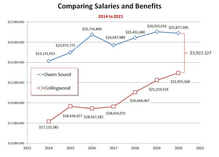 measured in the 2021 census. Yet, Owen Sound spent $3,922,227 more in salaries