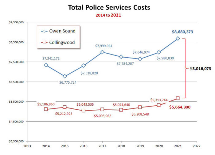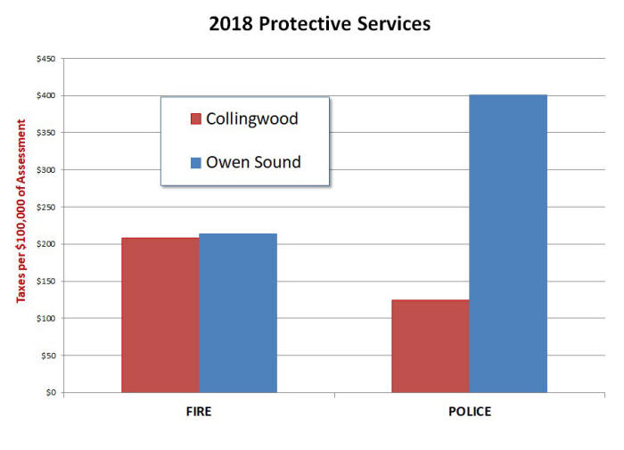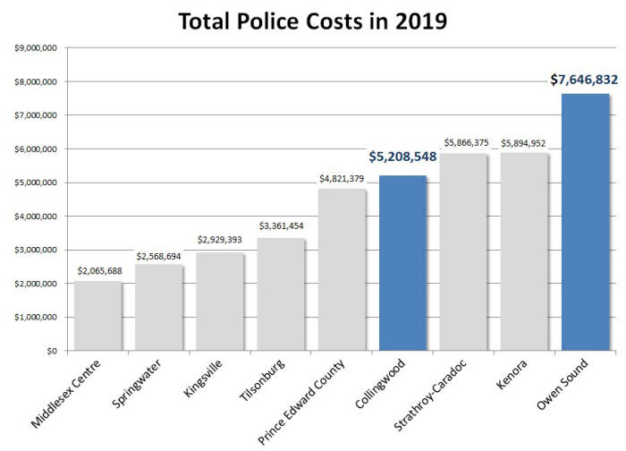about $3 million or 53.2% more on Police Services than Collingwood spent on